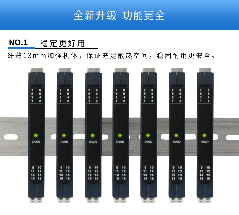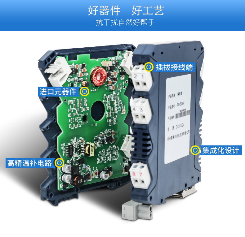 將PT100等熱電阻跟熱電偶信號轉換成各種電流、電壓等標準模擬量信號,可以與PC機、PLC、DCS等實現工控監測連接??垢蓴_能力強,遠傳不受其他設備影響。輸入、輸出選擇范圍寬,準確度高。電源可選擇,導軌安裝便于檢測與安裝。廣泛應用于各種對溫度集中測量的監控系統中。