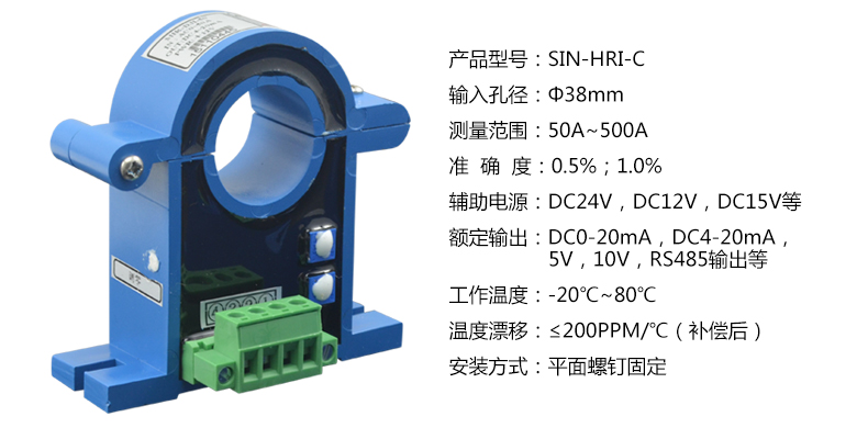 聯測_開合式霍爾電流變送器_孔徑: 20/22/38....46*180mm_