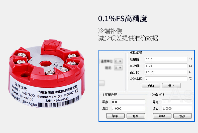 溫度變送器采用熱電偶、熱電阻作為測溫元件,從測溫元件輸出信號送到變送器模塊,經(jīng)過穩(wěn)壓濾波、運(yùn)算放大、非線性校正、V/I轉(zhuǎn)換、恒流及反向保護(hù)等電路處理后,轉(zhuǎn)換成與溫度成線性關(guān)系的4~20mA電流信號0-5V/0-10V電壓信號,RS485數(shù)字信號輸出。