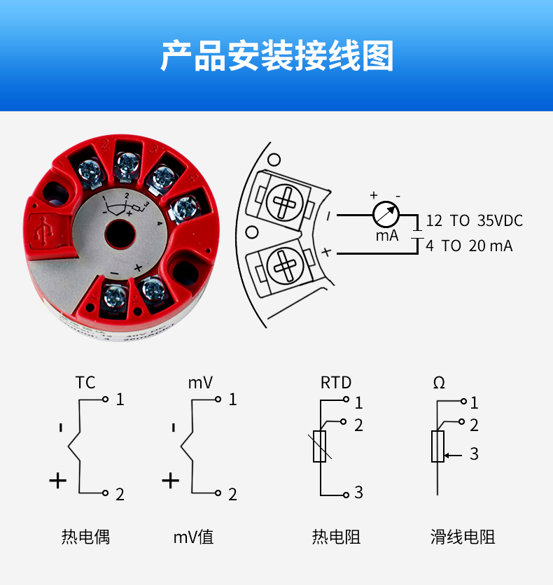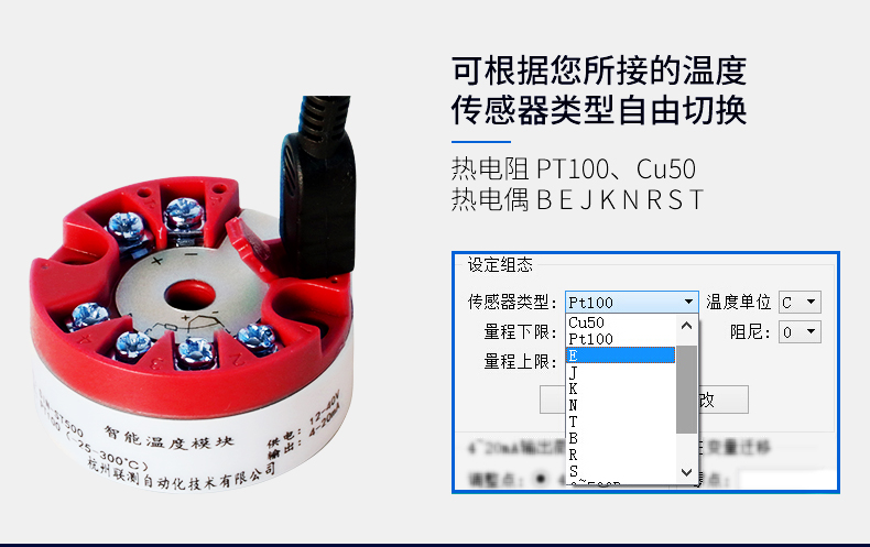 您的位置: 首頁 > 熱電偶 >智能一體化溫度變送器模塊轉(zhuǎn)4-20mA輸出熱電阻pt100熱電偶K型隔離