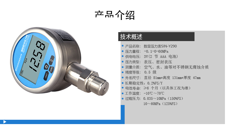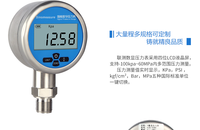 聯測數顯壓力表Y290,內置高精度壓力傳感器,能夠 準確的實時顯示壓力