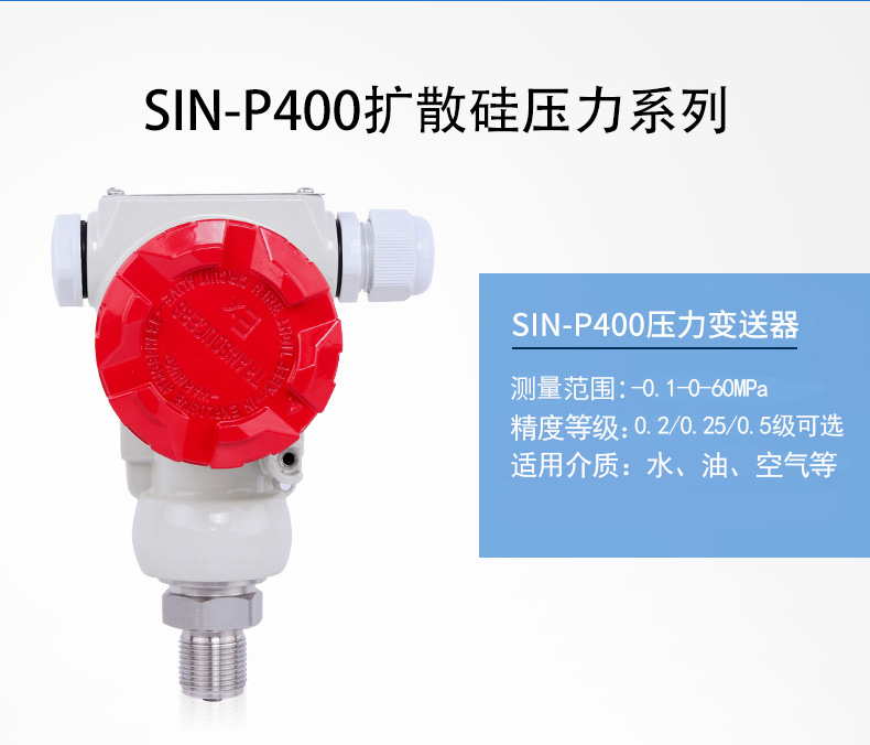 SIN-P400壓力變送器,采用全數(shù)字電路板,做到用戶可在一定范圍內(nèi)自行現(xiàn)場(chǎng)修改量程,極大的方便了現(xiàn)場(chǎng)使用。