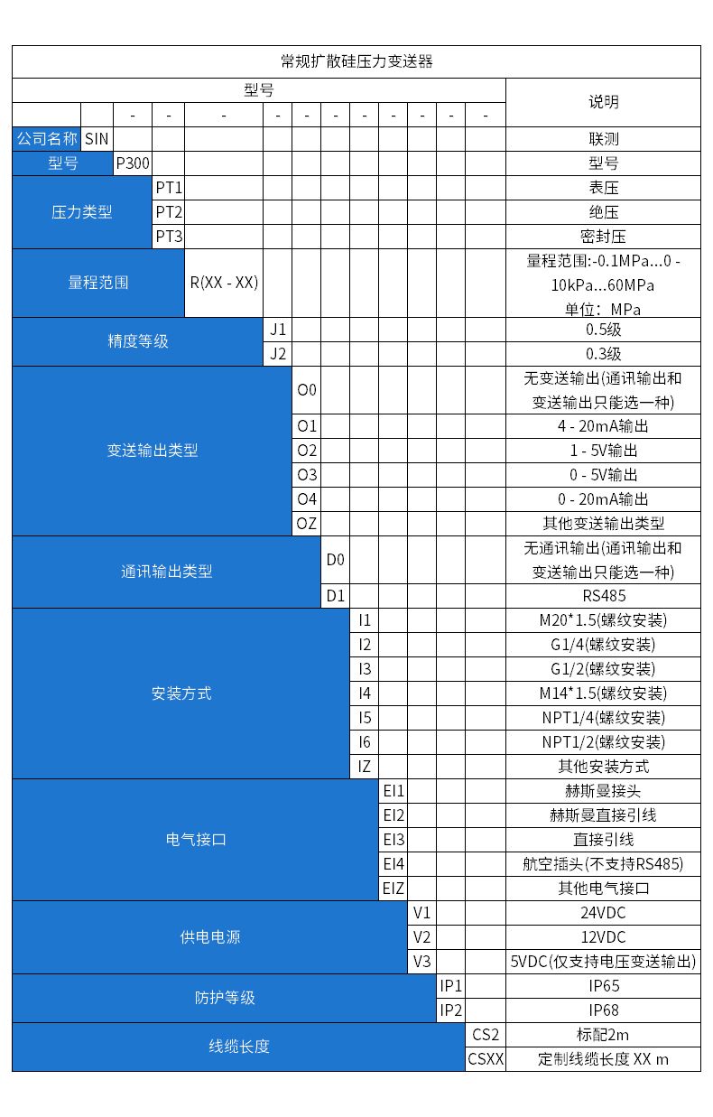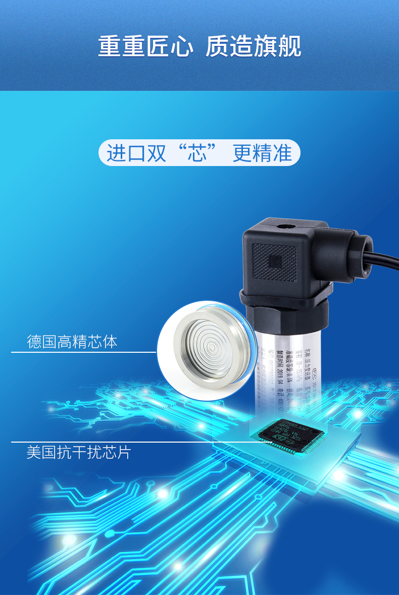 SIN-P300通用型壓力變送器德國(guó)進(jìn)口硅芯片,精度高性能穩(wěn)定;SIN-P300型通用型壓力變送器采用擴(kuò)散硅壓力芯體作為敏感元件,內(nèi)置處理電路將傳感器毫伏信號(hào)轉(zhuǎn)換成標(biāo)準(zhǔn)電壓﹑電流信號(hào)輸出,可直接與計(jì)算機(jī)、控制儀表﹑顯示儀表等相連。選用高穩(wěn)定性和高可靠性的壓阻式壓力傳感器和高性能的變送器專用電路,整體性能穩(wěn)定可靠,可進(jìn)行遠(yuǎn)距離信號(hào)傳輸。采用一體化全不銹鋼結(jié)構(gòu),經(jīng)過(guò)多次不銹鋼焊接,實(shí)現(xiàn)了全固態(tài)設(shè)計(jì),安裝方便,具有高抗振性和抗沖擊性,在惡劣環(huán)境中可以長(zhǎng)期使用。廣泛應(yīng)用于工業(yè)自動(dòng)化設(shè)備配套以及石油、化工、冶金、電力等控制領(lǐng)域。