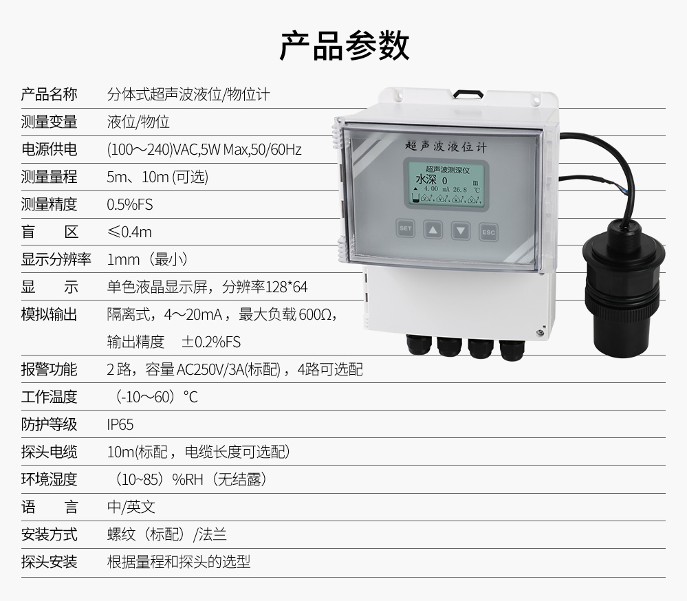 您的位置: 首頁 > 超聲波液位計 >聯測_SIN-ULS_升級款_分體式超聲波液位計/物位計/水位儀_